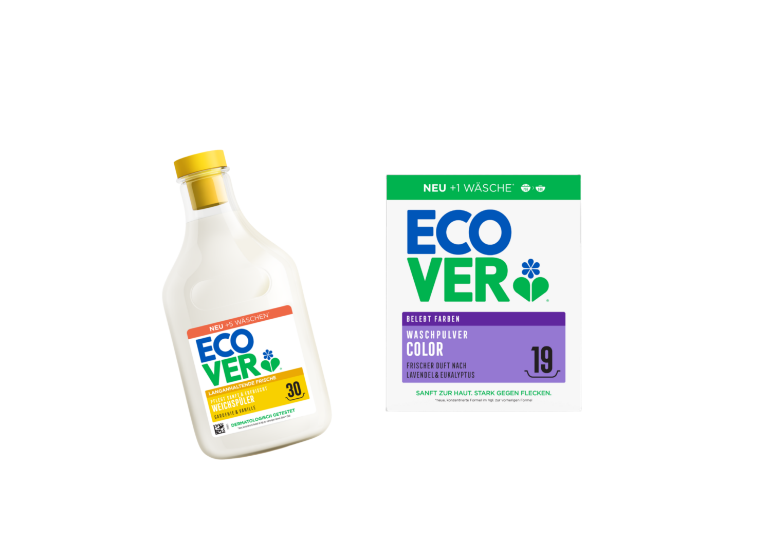 Ab sofort sind sowohl das Waschpulver als auch der Weichspüler in einer konzentrierteren Formulierung erhältlich und sorgen für geringere Dosierung und deutlich weniger Verpackungsmüll pro Wäsche.